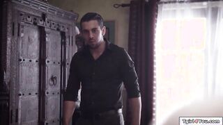 TS Gracie Jane and trans gf barebacks stepbrother in a 3some
