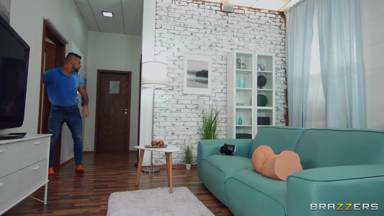 Roommates Katy Rose and Angelo Godshack have a bit of a competitive streak, and they both have to keep a close watch on their belongings. When Angelo gets a new VR headset for interactive porn, Katy wants to experience it for herself. She sneaks up on Angelo, who's getting down and dirty jerking off while wearing the headset, and soaks him, hiding behind the couch as Angelo removes the headset and races off to find her. Katy returns to her room, slides into her own VR fuck world, and proceeds to hump a pillow - followed by some dildo action. However, her masturbation prevents her from realizing that Angelo has snuck in and discovered her, and when he sneakily swaps her dildo for his hard cock, Katy is transported back to reality for multiple orgasms. After draining Angelo's cock of every last drop of cum, it's clear that VR is no substitute for the real thing.
