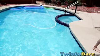 Twinks fool around in the pool before bareback orgy