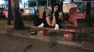 Sissy, rag, femboy riding her dildo in public viewers masturbate in front of her