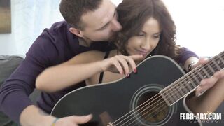 Hot babe with natural hairy pussy gets her pussy filled up by her stepbrother