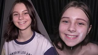 My stepdad cums on my pretty face twice... I love to feel his big cock on my tight...