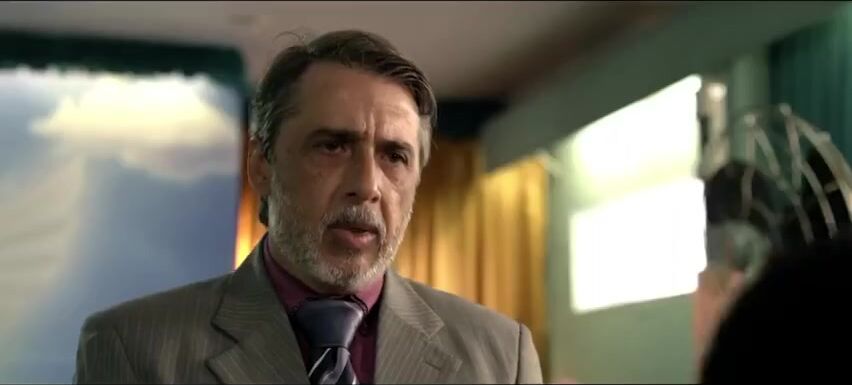 (1:00:34). While in the middle of their lovemaking, her husband arrives. Beto jumps out of the balcony, and Bruna, still sweaty and naked, doesn’t have time to put her clothes on so she just covers her naked body with the sheet and pretends that she’s sleeping. When her husband opens the bedroom door, he deduces that she just had sex with a lover because of the clues around (a broken vase, her naked under the sheet, a car speeding away in the street, etc.) and beats her up. He has no clue that her lover is his own son.