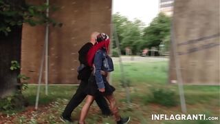 Risky outdoor sex and cum swallow (nervous first time) -