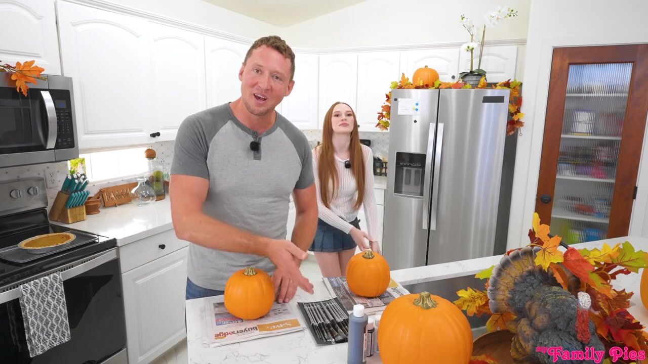 On today's episode of Stepdad How Do I, Pierce Paris is here to show everyone how Halloween is done with the help of his stepdaughter Harley Love. They begin with Pierce explaining how to paint pumpkins as a craft while Harley removes her bra beneath her sheer shirt. Then Pierce shows off how to make s'mores while Harley demonstrates that she has ditched her thong beneath her miniskirt.When Pierce goes on to talk about making homemade pumpkin pie, Harley wanders into the room in an apron and nothing else. She claims that store bought is just as good, and that he'll have more time afterwards. That's all Pierce can stand; he ducks his head to eat Harley's pussy pie. Then Harley sucks down her stepdaddy's dick.After Harley's deep throat BJ, she gets on her knees on the stool so that her stepdad can pound deep into that creamy coochie. She gets on her back next, spreading herself all the way out so Pierce can fuck that landing strip snatch. When Pierce cums in Harley's tight twat, Harley dredges her fingertips through her treat and announces that she enjoys his sweet cream.