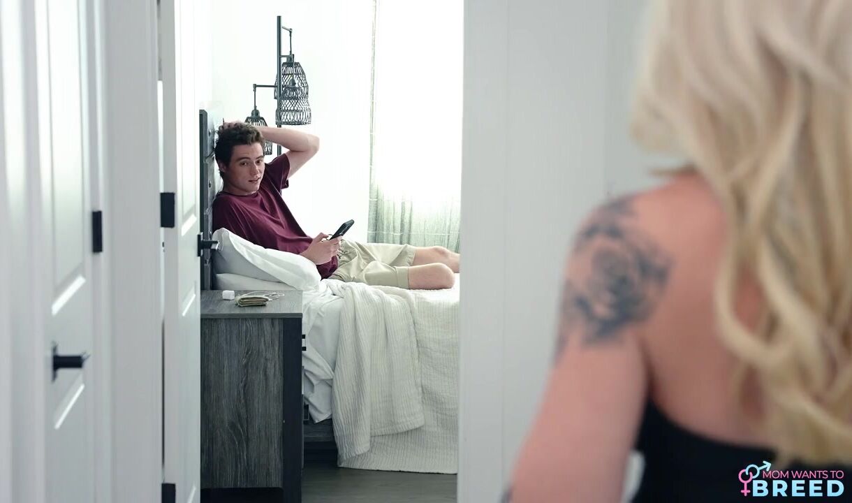 Carina Blair has a confession to make to her husband Brick Danger. She's been wanting a baby and thinks her time is running out. The confession is that Carina has bred with her stepson, Jodie Johnson. Now that Carina has confessed, she feels much better although Brick is flabbergasted.We flash back to the way Carina seduced Jodie with a sexy black dress that rode up to reveal her lack of panties. She tells Jodie that she needs a big strong man to breed her, then pops her magnificent boobs out to jiggle them for him. Jodie is immediately prepared to be the man Carina needs, so she takes him to bed.Jodie begins by worshipping his stepmom's tits with his mouth, then enjoys a lusty BJ. After eating Carina out, Jodie shoves himself in balls deep with his stepmilf still on her back. Carina gets it in doggy next, the perfect position for Jodie to give it to her until he gives her the creampie that will end up breeding her.