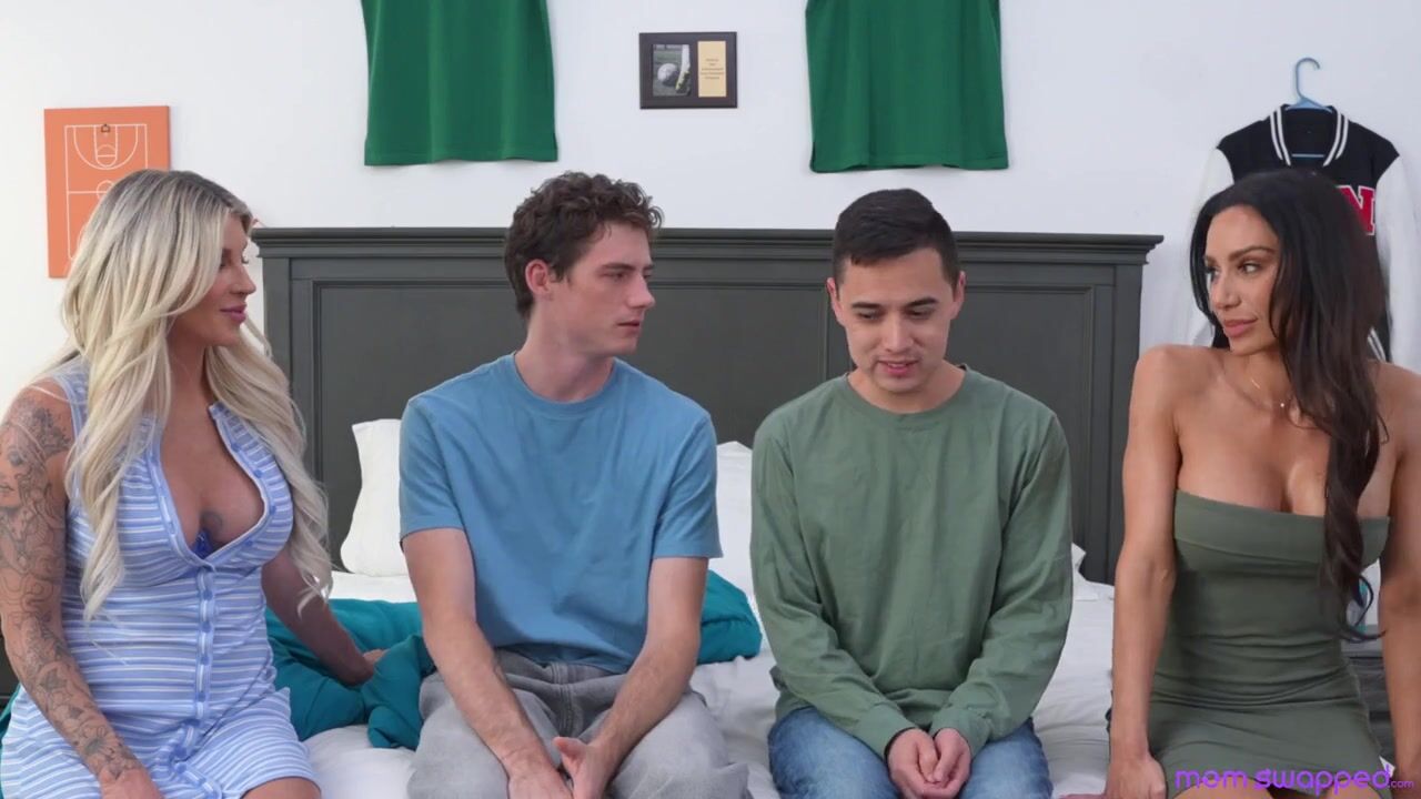 Remy Rune and Taylor Wild are making sandwiches and talking about how well they're sticking to their new year's resolutions. They get to talking about how their stepsons aren't taking theirs seriously. The ladies comment that they both catch their stepsons staring at their tits before going to bring them the sandwiches.Taylor immediately suspects her stepson Jodie Johnson has broken his resolution to not look at mom porn. Juan Loco has been looking, too. The milfs suggest that they use their imaginations to jerk off instead, and even offer to give the boys a titty show. When Jodie and Juan whip out their dicks, the stepmilfs are stunned at how nice they are. The titty show turns into a hardcore affair, with Remy sucking down Juan and Jodie enjoying a BJ from Taylor. The guys demonstrate they know how to eat pussy, and then it's no holds barred.Taylor rides Juan's hardon in cowgirl as Jodie gets the same from Remy. Then the ladies swap partners so Remy can get a dicking down from Jodie and Talyor can get a doggy pussy pounding from Juan. The milfs switch again for another round of doggy. Then Remy gets on her back for Jodie and Taylor spreads herself out for Juan. They both finish that way, then helps their stepsons get off too.